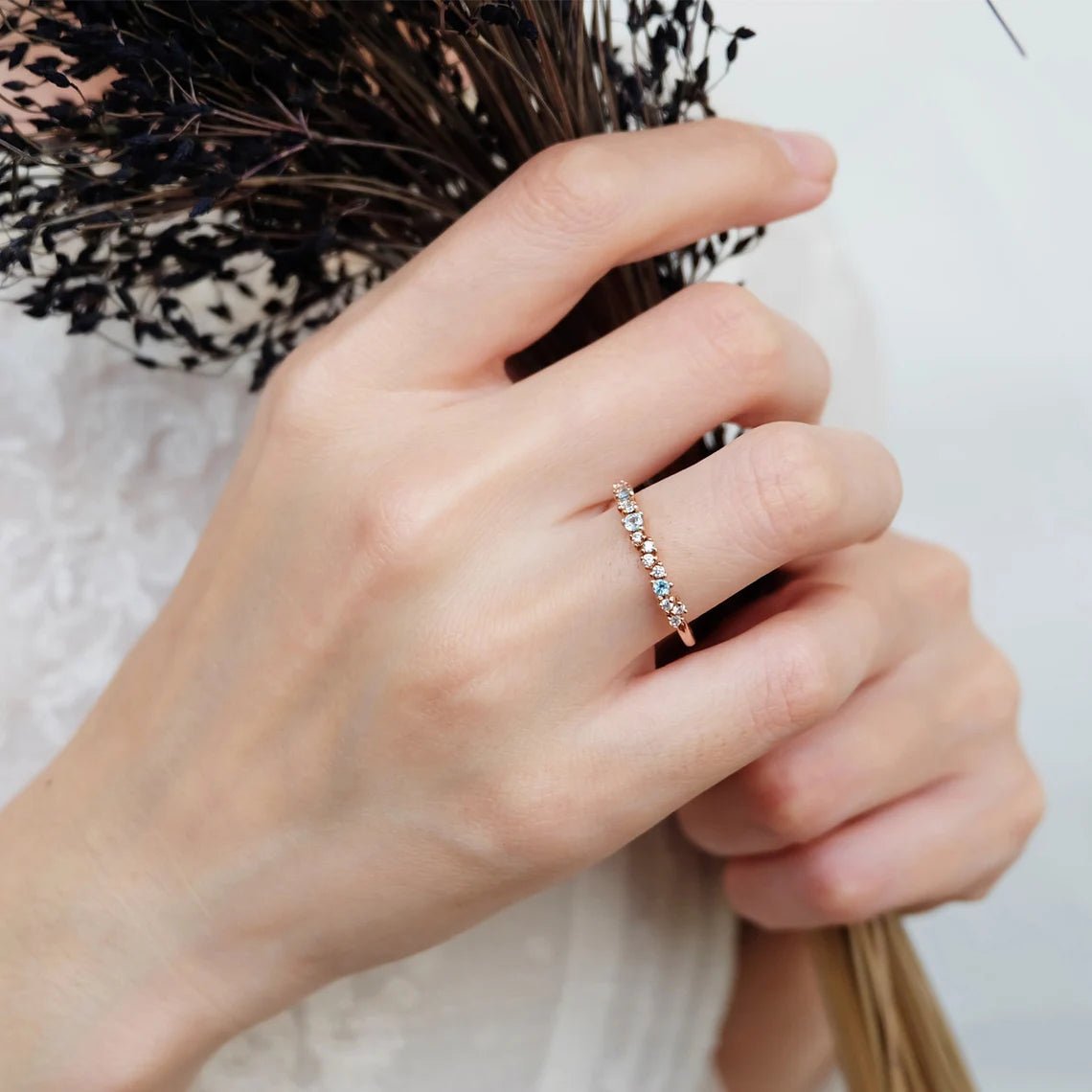 The Aquamarine Diamond Band Mint is a stunning piece that beautifully combines two gemstones, each with its own powerful symbolism. Aquamarine, with its serene blue hues, is often associated with tranquility, clarity, and calmness. This gemstone symbolizes the vastness of the ocean, evoking a sense of peace and emotional balance. On the other hand, diamonds have long been symbols of strength, eternity, and purity. The unbreakable nature of a diamond represents resilience, while its brilliance signifies clarity of purpose and the enduring power of love. Diamonds are often used to mark special milestones and represent lasting commitments. This combination makes the Aquamarine Diamond Band Mint a perfect choice for those celebrating love, growth, or personal transformation, with each stone offering a unique facet of meaning and power.