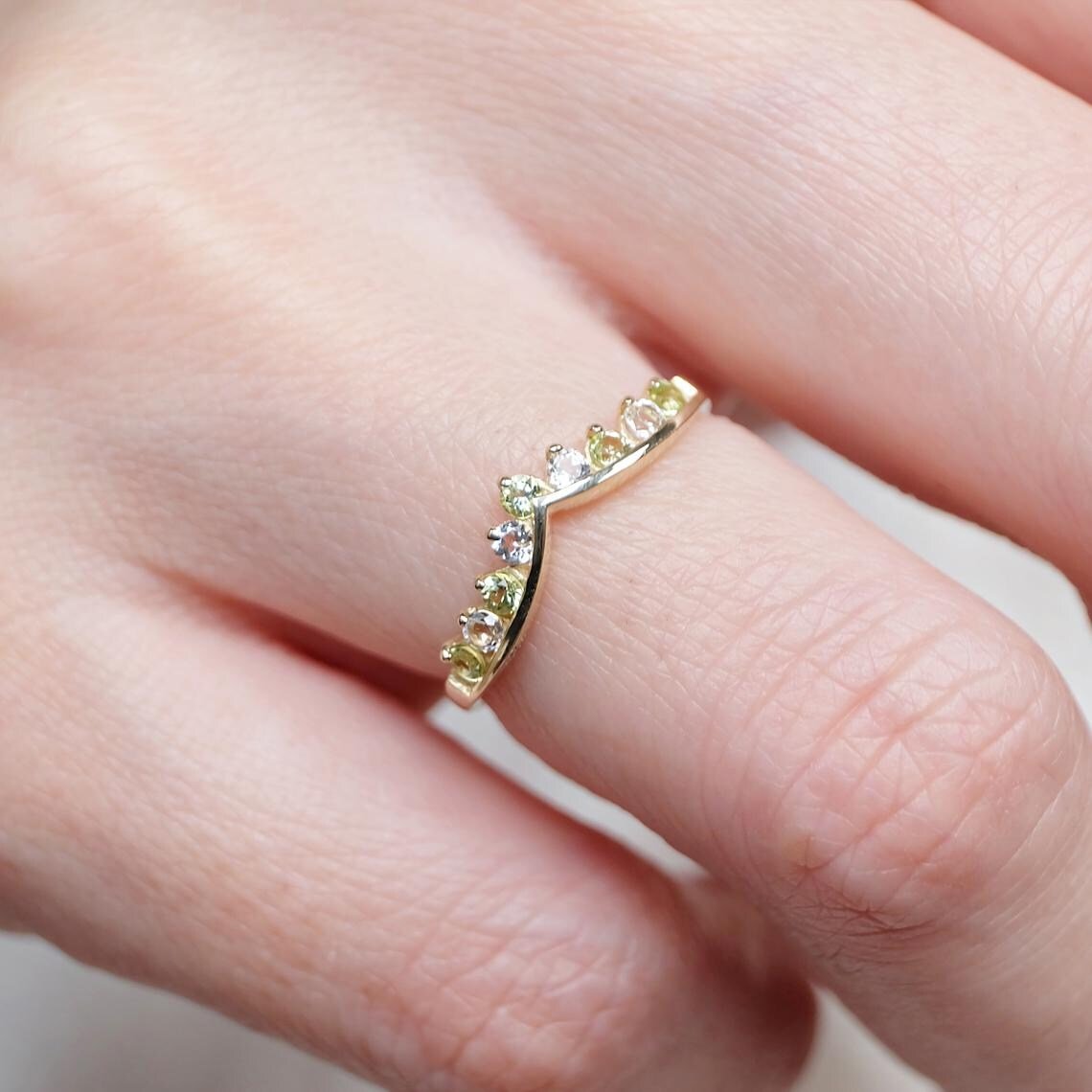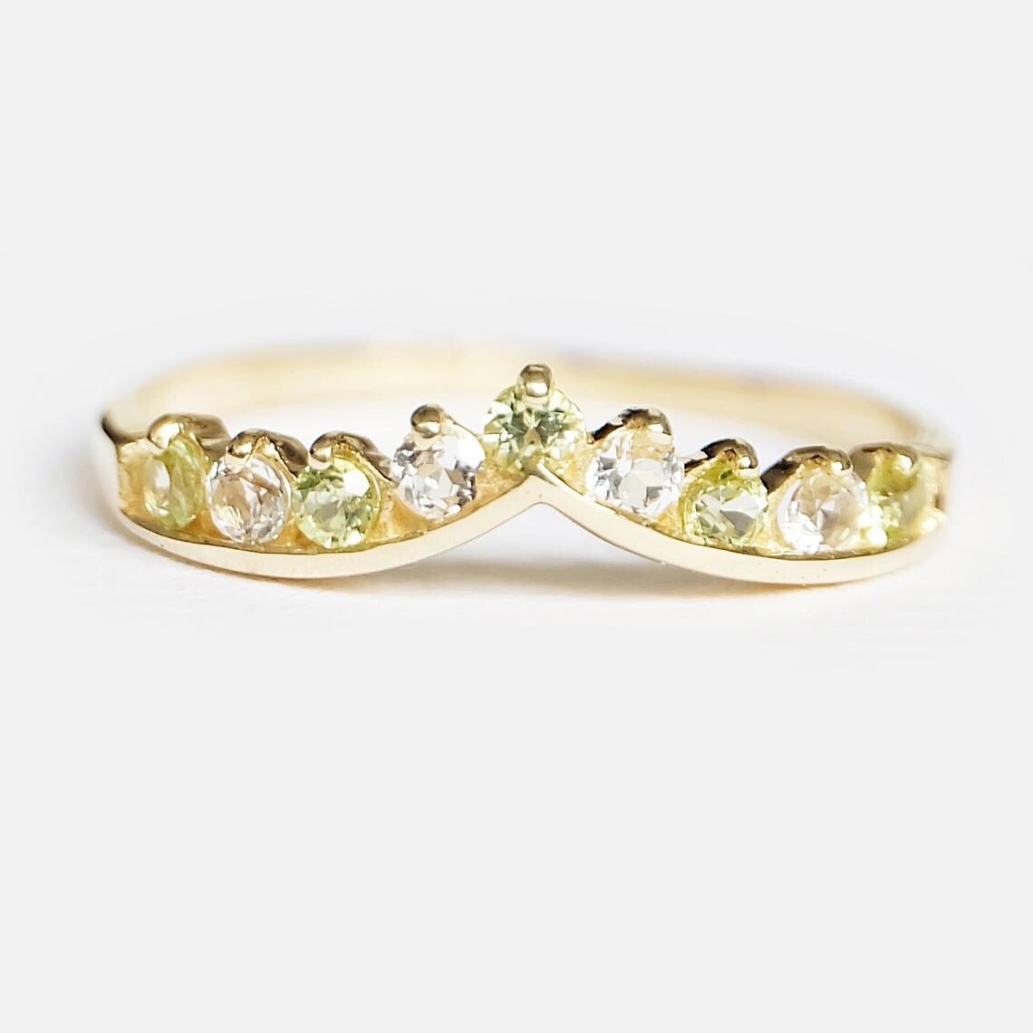 The Peridot Cluster Ring Camille is a radiant celebration of renewal, harmony, and light. At its heart lies the vibrant green peridot -  known as the stone of growth, abundance, and positive energy - symbolising emotional balance and protection. Surrounding it, shimmering white topaz stones add brilliance and clarity, representing truth and spiritual healing. Set in polished 14K gold, the Camille ring features an elegant cluster design that blends organic beauty with timeless sophistication. Perfect for those who cherish meaningful gemstones and refined craftsmanship, the Peridot Cluster Ring Camille shines with vibrant energy, graceful charm, and symbolic depth.