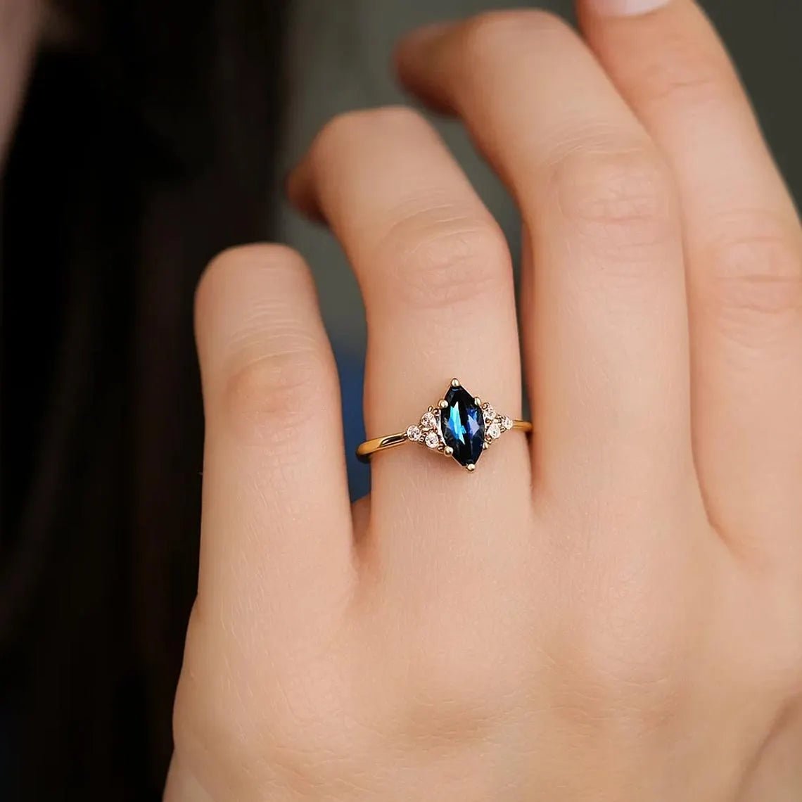 Discover timeless elegance with the Marquise Sapphire Diamond Ring Renée, a refined design that celebrates grace and strength. The sapphire, revered as the stone of wisdom, loyalty, and truth, symbolizes clarity, protection, and enduring devotion. Paired with the diamond, known for purity, resilience, and everlasting love, this ring represents harmony and commitment. The marquise-cut sapphire elongates the silhouette with a regal glow, while brilliant diamonds add radiant sparkle. Crafted with Sovats’ exquisite craftsmanship, this sapphire and diamond ring embodies sophisticated beauty and meaningful symbolism.