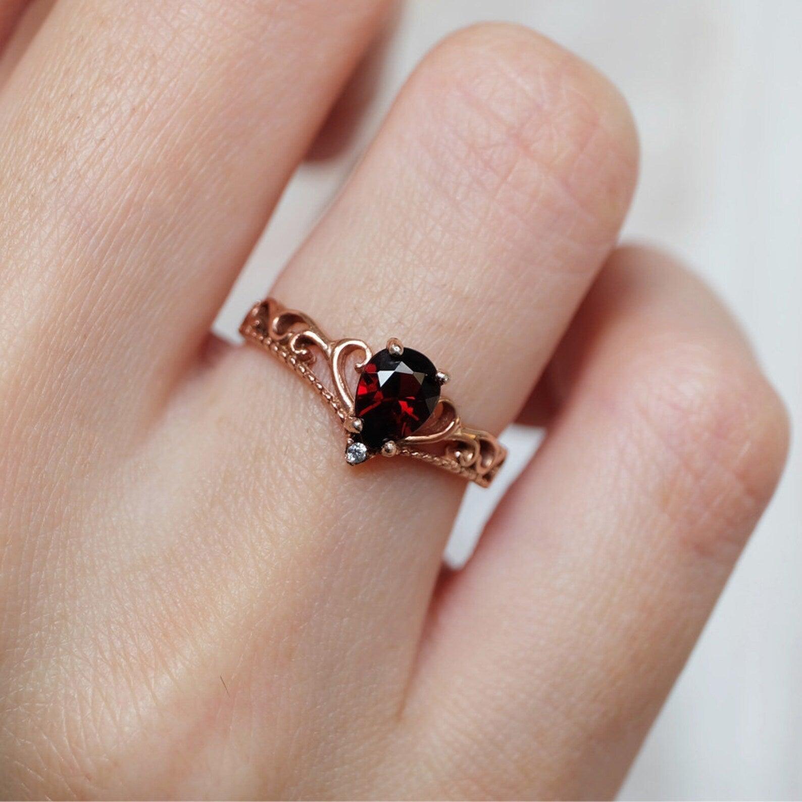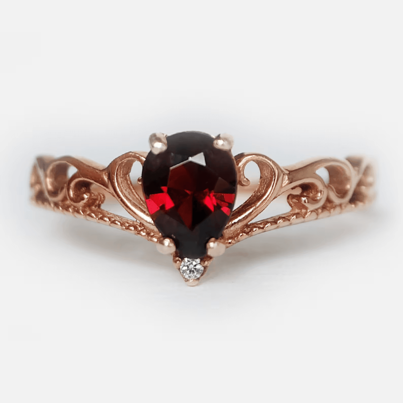 The Garnet Vintage Ring Elise features a beautiful stone that exudes classic elegance. Perfect for adding a touch of sophistication to any outfit, this ring offers the potential for a timeless and versatile accessory.